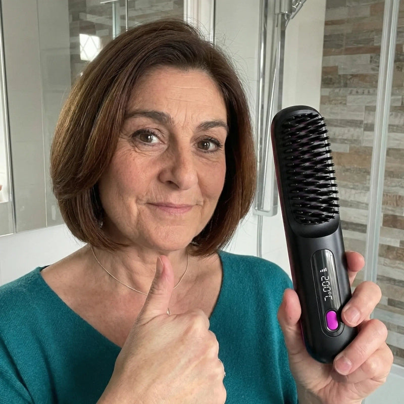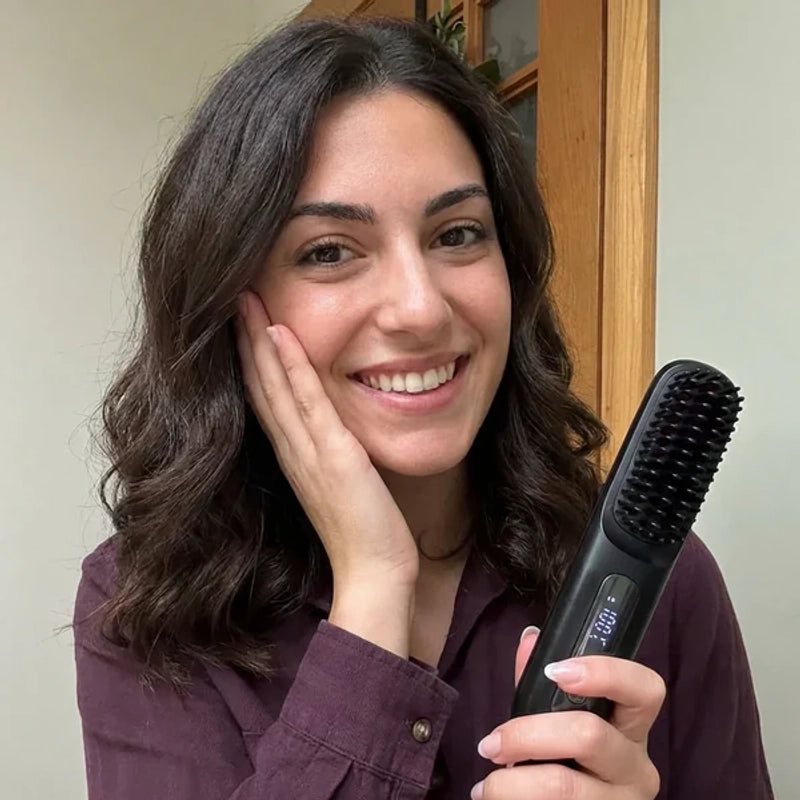 Marre des fils ? La Brosse Velistra est sans fil et ultra-compacte, pour un coiffage chic et rapide partout, même en voyage. Révélez une coiffure impeccable, sans effort, tout en protégeant vos cheveux avec sa technologie céramique.
