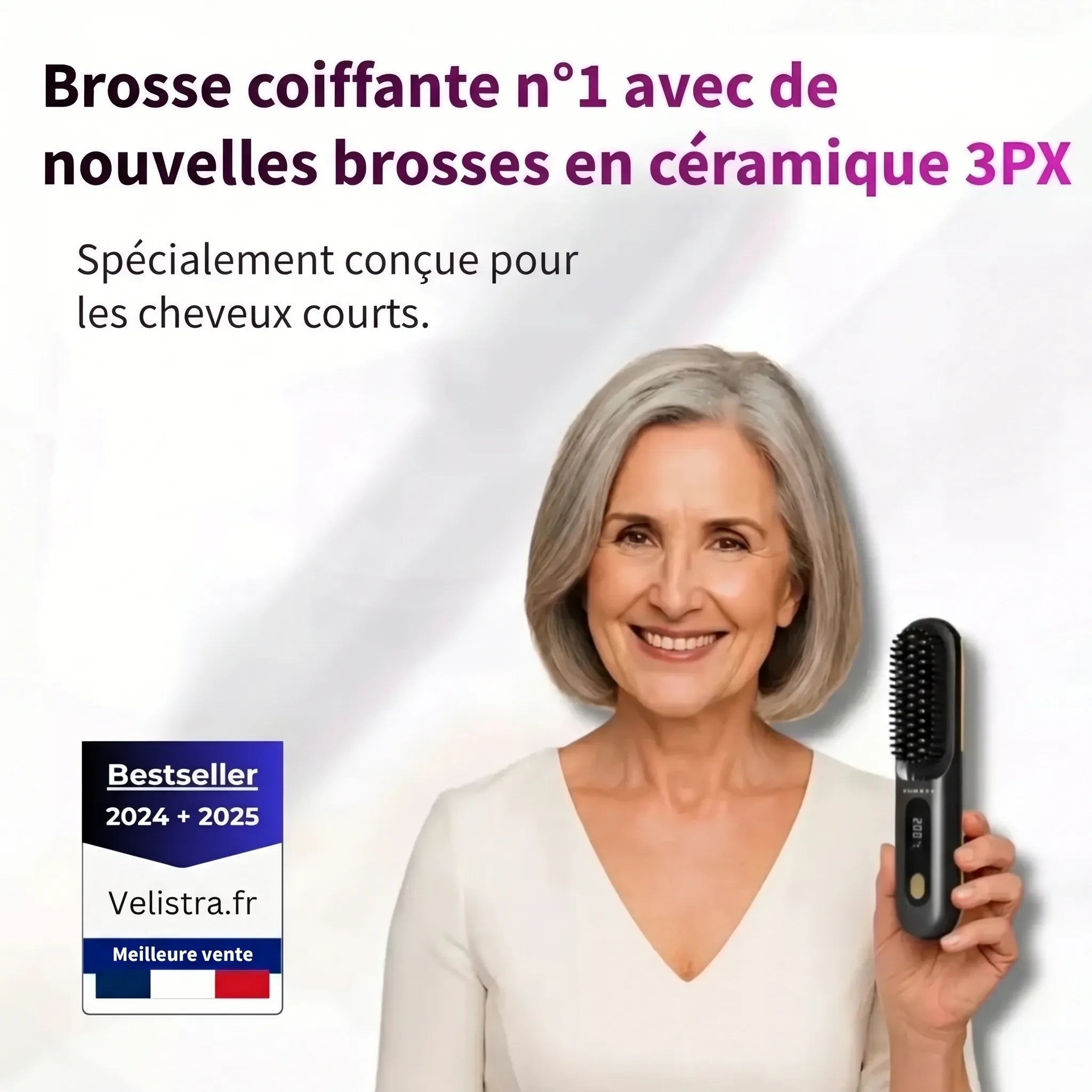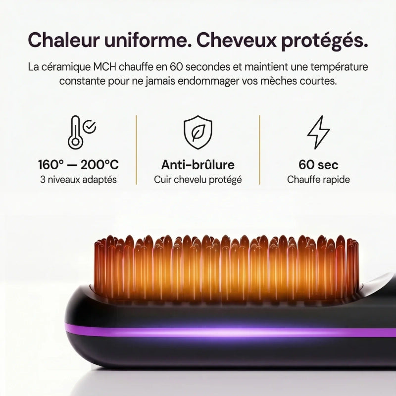 Créez des looks impeccables en un éclair! La Brosse Velistra™ est conçue pour vos cheveux courts, offrant un coiffage rapide, chic et sans effort grâce à sa technologie céramique protectrice. Adoptez l'élégance au quotidien !